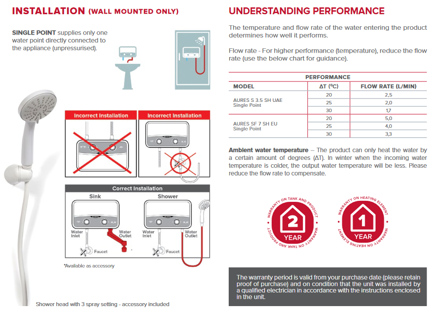 -Το κορυφαίο επίπεδο σε προστασία νερού εγγυάται την τοποθέτηση του ταχυθερμοσίφωνα σε ντουζ